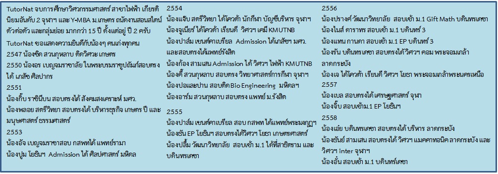 ส่วนหนึ่งของน้องที่สำเร็จจากการเรียนแบบ Private กับ TutorNat ปี 2547-2558